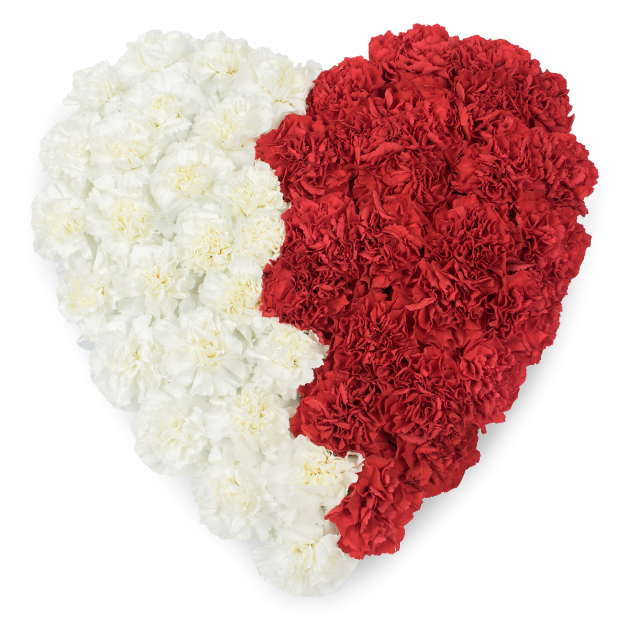 Dive into the world of luxury with our heart-shaped carnation bouquet from Handy Flowers. This dazzling arrangement features a delightful mix of white and red carnations, each chosen for its pristine condition and vibrant color. Our skilled team ensures every bloom is hand-selected to meet our premium standards, guaranteeing a look that is both elegant and striking.