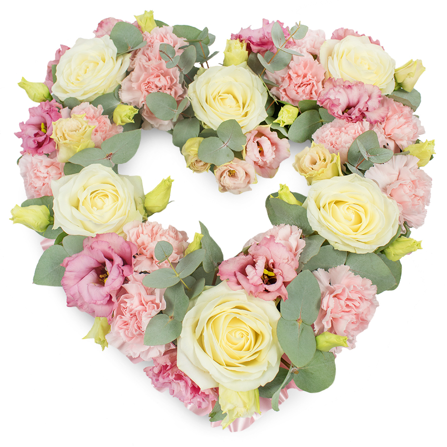 Honor cherished memories with our Timeless Elegance Sympathy Bouquet. This beautiful arrangement features a harmonious mix of pristine white roses, delicate pink carnations, elegant pink lisianthus, and rich eucalyptus leaves, all expertly combined into a unique and captivating design.